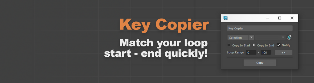 With the UI enabled you can choose whether to use the selection, all animated objects or a specified selection set, as well as some other options. Once you have the settings to your liking, you can use the tool as a shelf button without UI to quickly copy one end of your loop to the other, in order to ensure they match.